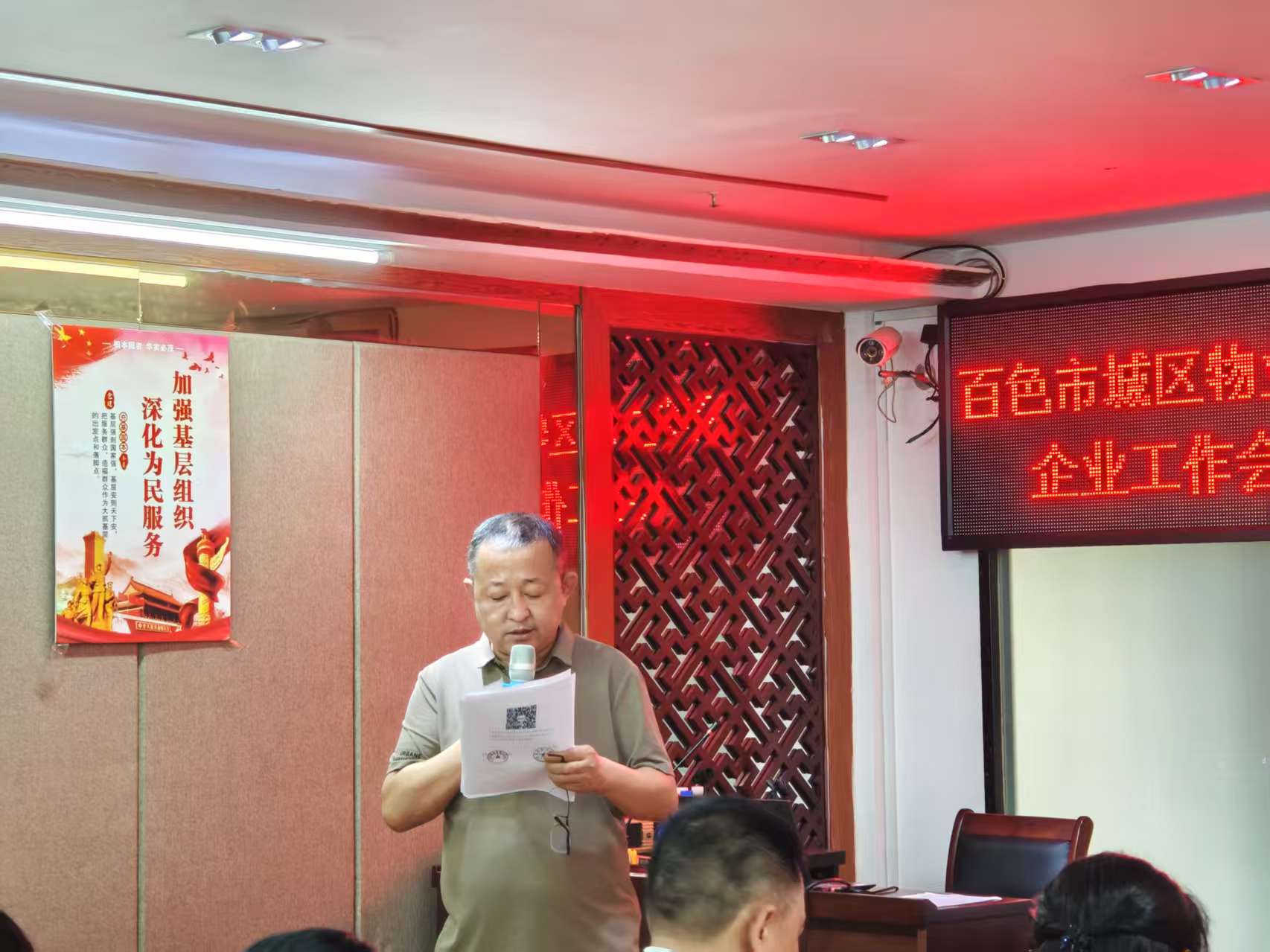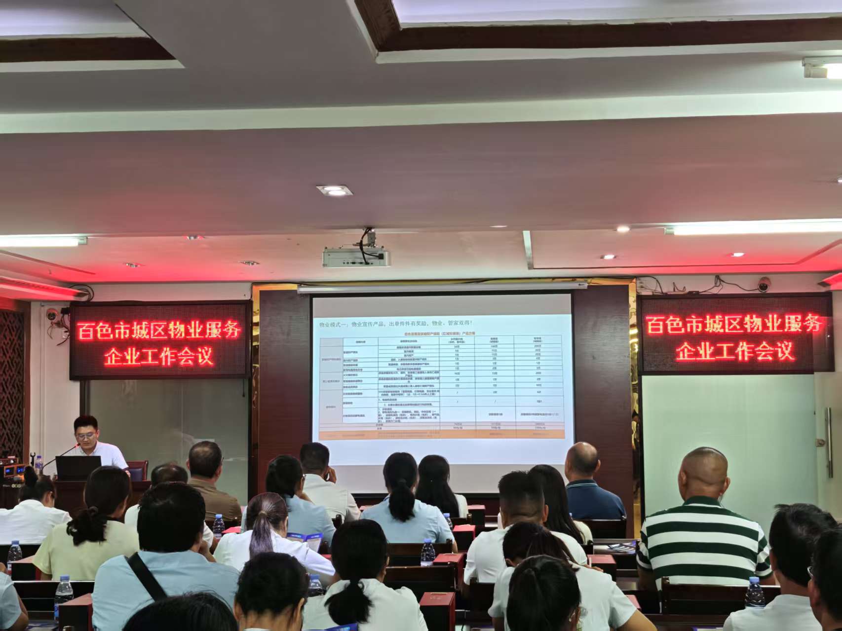 7月14日下午4时,好盈v3二楼大会议室“百色市城区物业服务企业工作会议”如期举行。本次会议由好盈v3组织,旨在动员全市物业服务企业力量,共同推进普惠型家庭财产保险“红城安居保”的宣传与推广工作。城区各物业服务企业主要负责人及物业综合管理人员齐聚协会会议室,共商惠民利民大计。